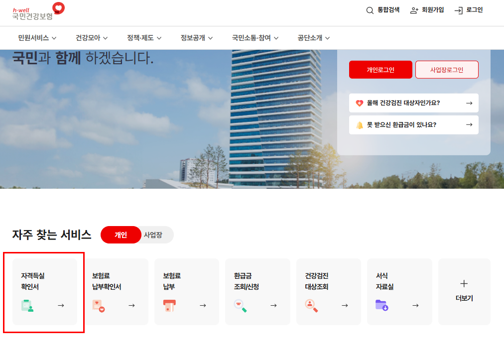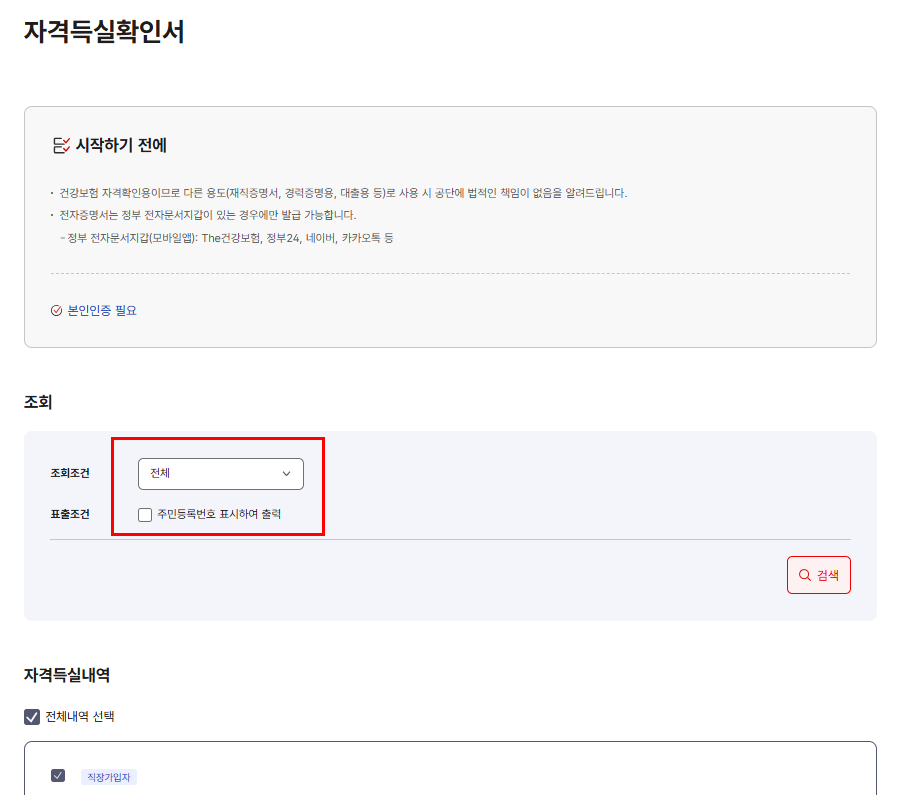 - 내용 : 건강보험 자격 취득 및 상실(득·실) 이력 확인
