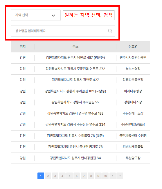 - 헬스장, 요가, 수영장, 키즈카페(운동 관련) 등 다양한 종목 포함