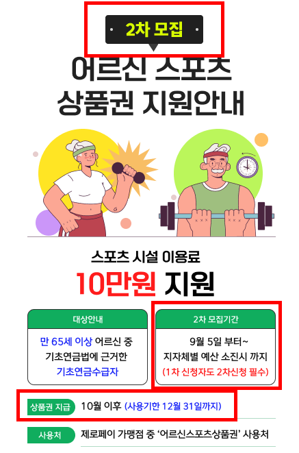“기초연금 수급 어르신은 9월부터 ‘어르신 스포츠 상품권’을 신청해,