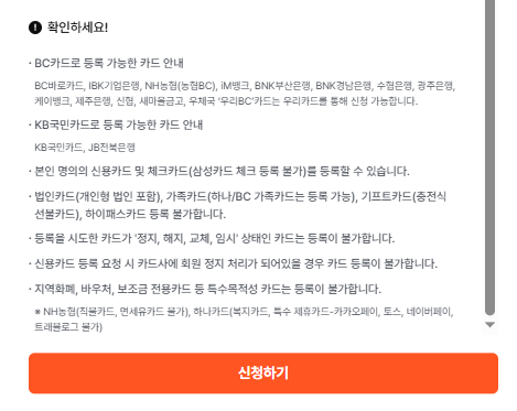 BC카드로 등록 가능한 카드와 KB 국민카드로 등록 가능한 카드안내입니다.