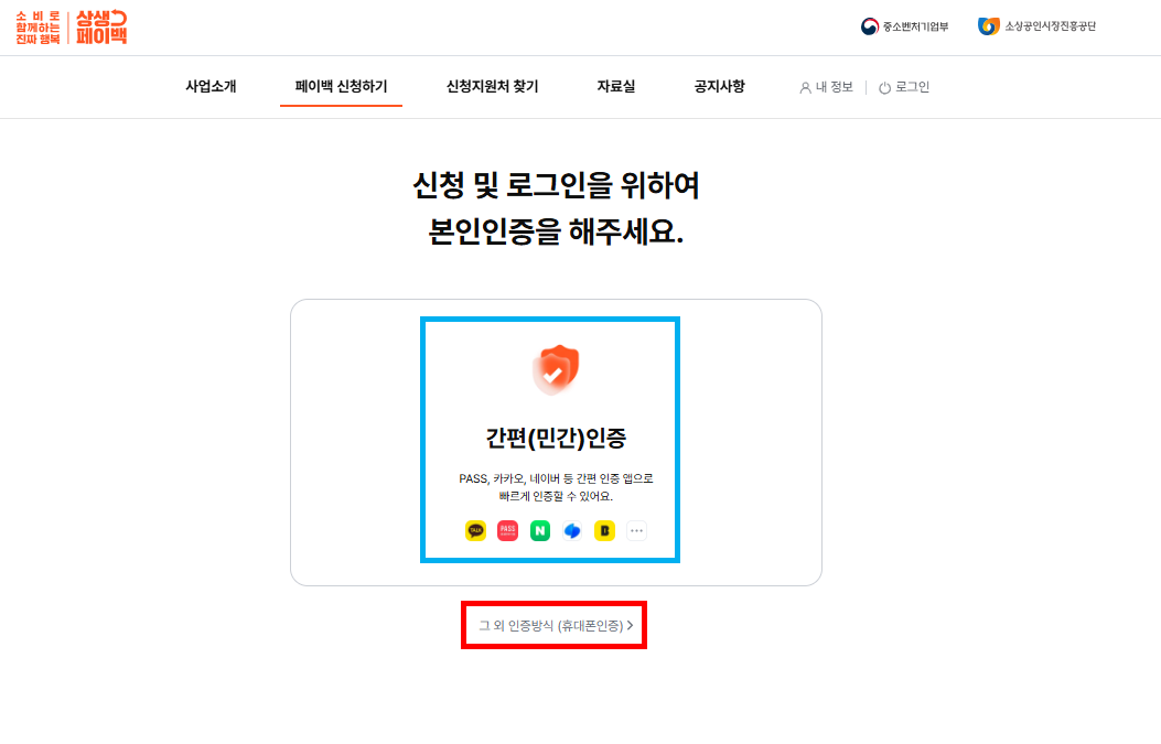 5-1. 먼저 상생페이백.kr로 접속 - 신청하기 눌러주세요