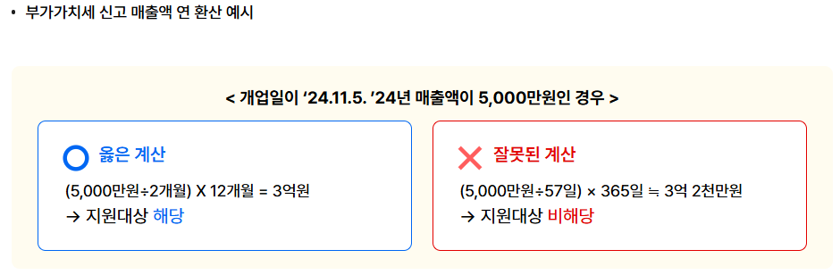 ’24년(’24.1.1~12.31) 및 ’25년(’25.1.1~4.30) 개업 소상공인 : 개업 이후 월 평균 매출액을 연 환산*