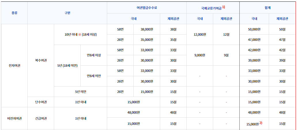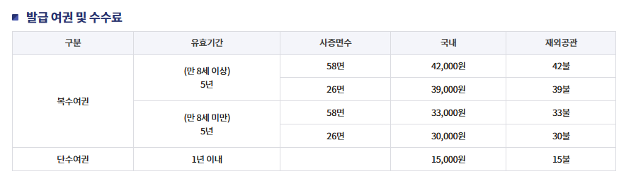 ※ 여권 종류·면수에 따라 다름