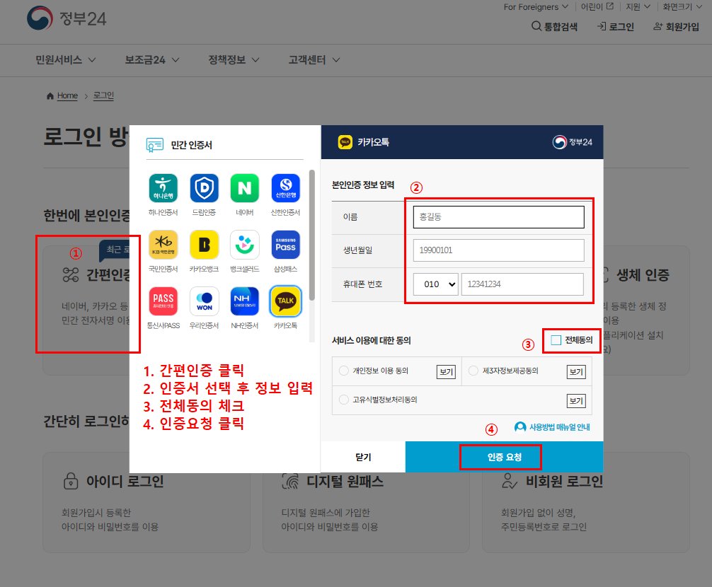 - 본인 인증(간편인증·공동인증서)