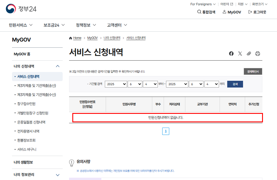 진행 상황은 서비스 신청내역에서 확인하실 수 있습니다.