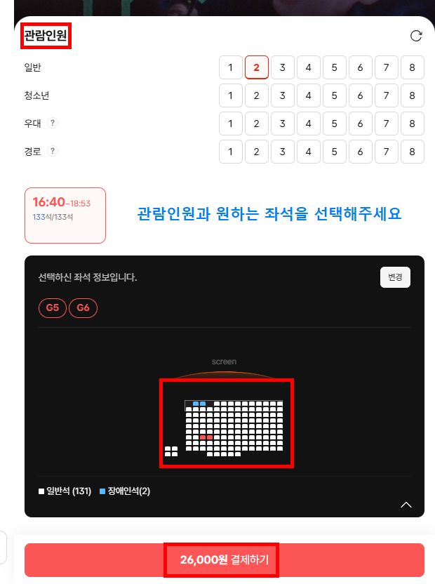 ③ 관람 인원과 좌석 선택