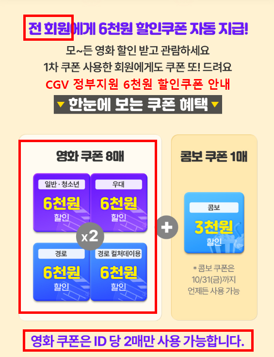 - 각 영화관 앱/홈페이지 로그인 시 쿠폰함에 자동 지급
