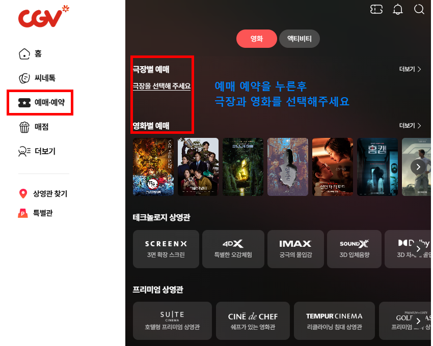 4. CGV 예매 스크린샷으로 보는 예매 가이드(홈페이지 기준)