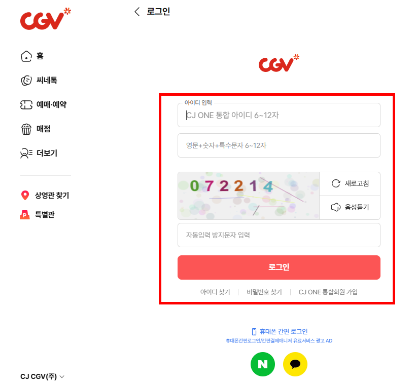 CGV 홈페이지 접속하기