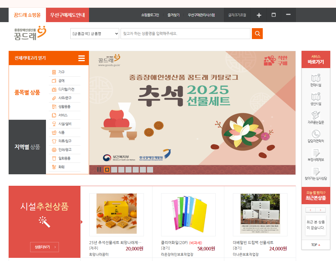 ① 꿈드래 쇼핑몰 (goods.go.kr)