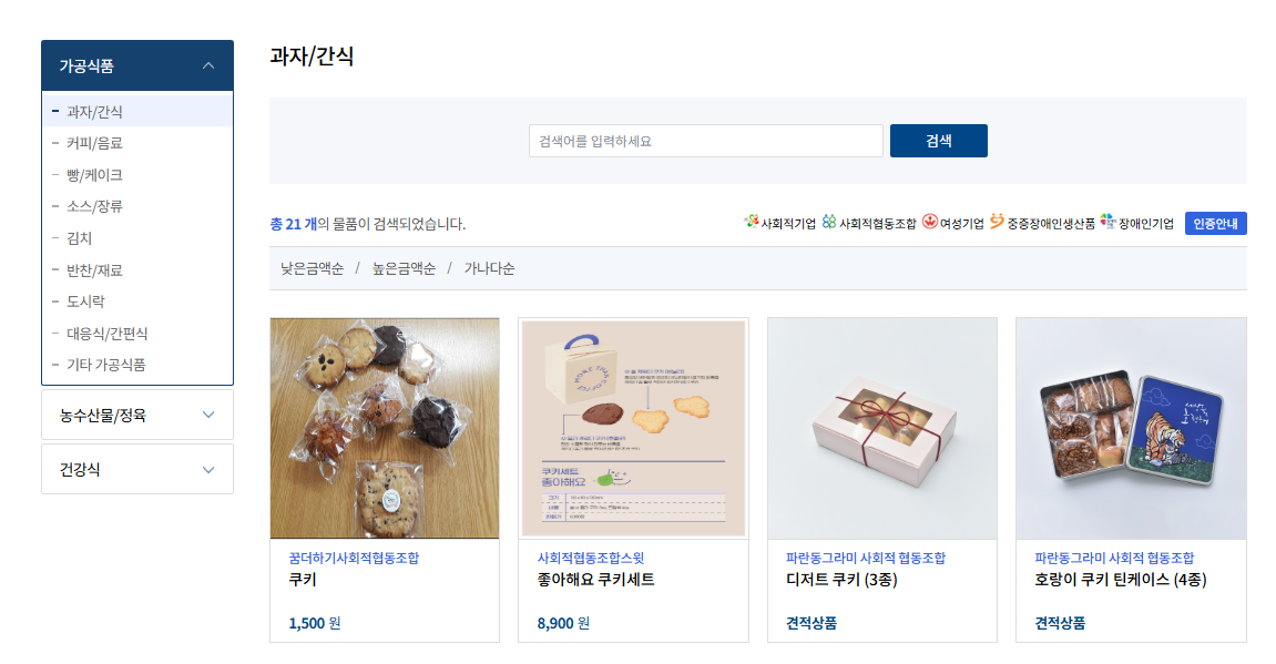 중증장애인 생산품은 일반 마트에만 가면 잘 보이지 않죠.