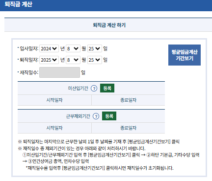 👉 바로가기: 고용노동부 퇴직금 계산기