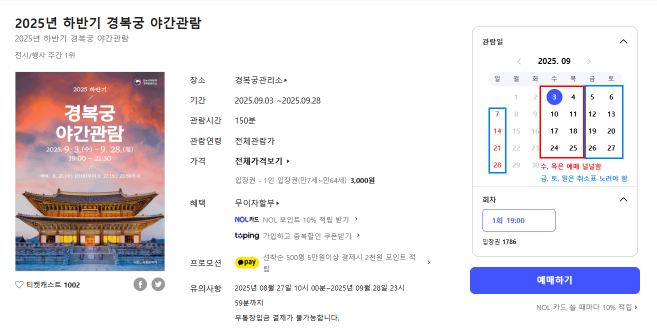 - 주말·공휴일은 특히 빠르게 마감되므로 평일 관람도 고려 추천