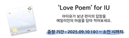 - ‘Love Poem for IU’ 코너에서 사랑을 전하는 편지를 작성할 수 있어요