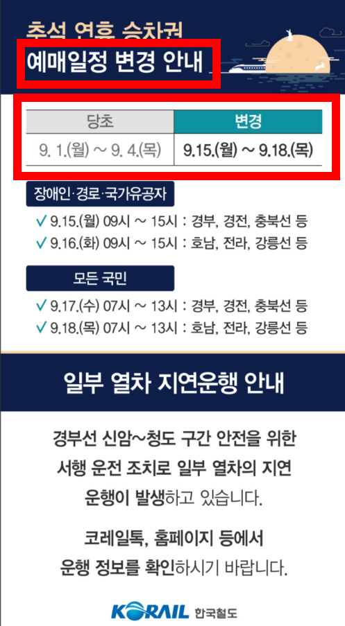 2025년 추석 기차표 KTX 예매 일정이 변경된 것 알고 계시나요?